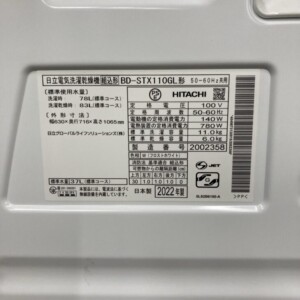 今回は和泉市にお住まいの40代・会社員の親子世帯より、日立 ドラム式洗濯乾燥機 BD-STX110GL(2022年製/洗濯11kg・乾燥6kg)を出張買取のご依頼。お電話でお問い合わせをいただき、設置場所や搬出経路を確認のうえ訪問しました。