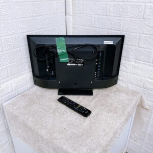 お預かりした24A50は、画面・筐体に日常使用に伴う細かな擦り傷が見受けられるものの、映像・音声ともに動作は良好でした。背面ラベルから定格消費電力38W、年間消費電力量44kWh、24V型のハイビジョンモデルであることを確認。純正スタンド・電源コード・純正リモコン(EN3294H)が揃っており、日常使用に支障のないコンディションです。液晶のムラやドット欠けは見られず、リモコンの反応も良好でした。