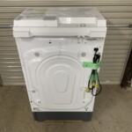本体は全体的に使用に伴う細かなすり傷が数カ所見られるものの、パネル表示やドア周りの艶感は保たれ、目立つヘコミや黄ばみはなし。庫内ドラムの回転は良好で、異音や偏りは確認されませんでした。背面と底面に大きなダメージはなく、給水ホース・排水ホース・電源コードが揃っていました(取扱説明書は欠品)。フィルター部は埃の付着が少なく、日常的に手入れされていた様子がうかがえます。