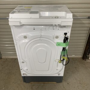 本体は全体的に使用に伴う細かなすり傷が数カ所見られるものの、パネル表示やドア周りの艶感は保たれ、目立つヘコミや黄ばみはなし。庫内ドラムの回転は良好で、異音や偏りは確認されませんでした。背面と底面に大きなダメージはなく、給水ホース・排水ホース・電源コードが揃っていました(取扱説明書は欠品)。フィルター部は埃の付着が少なく、日常的に手入れされていた様子がうかがえます。