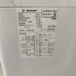 香川県さぬき市で洗濯機の出張買取|SHARP ES-GV8E-S(8.0kg・2021年製)小傷あり・付属品そろいで適正価格査定