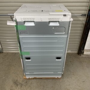 外装は正面パネルに使用に伴ううすい線キズが確認できましたが、角の欠けや大きなヘコミはありません。ドアの開閉は滑らかで、ロックの反応も良好。操作パネルの表示・各ボタンの反応は問題なしでした。庫内ドラムは光沢が残り、ベルト音や偏りは見られず回転は安定。背面パネルや底部の歪みはなく、給水ホース・排水ホース・電源コードが揃っていました(取扱説明書は欠品)。動作テストでは洗い→すすぎ→脱水→乾燥まで通電確認を行い、乾燥時の発熱量・運転音ともに良好でした。