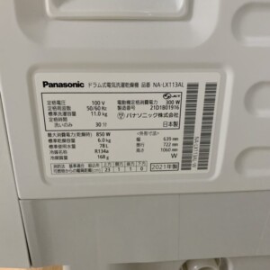 NA-LX113AL-Wは11kg洗濯/6kg乾燥の大容量クラスで、ファミリー層からの需要が高いモデルです。日本製で耐久性の評価が高く、2021年製・動作良好・主要付属品そろいはプラス要因。反面、正面のうすい線キズと取説欠品はマイナス評価です。中古市場の成約相場、再整備・クリーニング費用、当日の良好な搬出条件を総合し、最終の査定価格は36,000円をご提示。状態と価格の根拠をご説明し、ご快諾のうえその場でお引き取りしました。