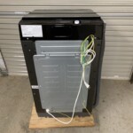 外観は前面・側板に使用に伴う細かな擦れが点在しますが、打痕や割れはなく全体の艶は保たれています。天板はブラックのガラストップで、光の加減で拭き跡がわずかに見える程度。槽内はカビ臭・黒ずみが少なく清潔で、試運転では洗い・すすぎ・脱水すべて良好でした。背面銘板より定格容量6.0kg、標準水量50L、標準使用水量132L、消費電力255/300W、外形寸法 幅555×奥行525×高さ920mm、防水等級IPX4を確認。給水ホース・排水ホース・電源コードが付属し、取扱説明書と元箱は欠品です。