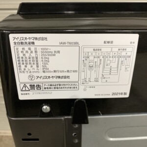 福島県いわき市でアイリスオーヤマ IAW-T603BL(6kg・2021年製)を出張買取|小キズありのブラックモデルを丁寧に査定しました