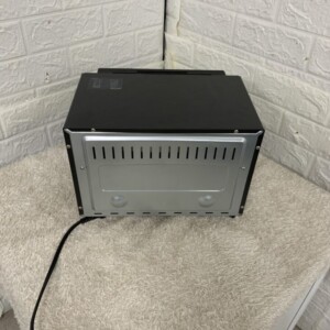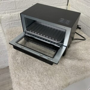 外装はマットブラックで、天面と前面ガラスに微細な擦れがわずかに見られる程度。庫内は焼き網・受けトレイ(角皿)が揃い、ヒーターの発熱も良好でした。ドア開閉のガタつきはなく、タイマーつまみの操作感も正常。背面パネルの歪みや大きな打痕は確認されず、全体として「きれいな状態」と評価しています。付属の説明書や元箱はありませんが、基本付属品が揃っている点はプラス査定になりました。