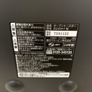 埼玉県草加市で象印 オーブントースター EQ-EH17 を出張買取|付属トレイあり・きれいめのため適正価格で査定しました