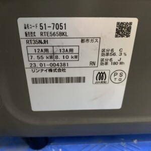 リンナイ製RTE565BKLは、2024年製の比較的新しいモデルで人気機種です。動作確認済みで外観も良好だったため、今回は6,000円での査定となりました。中古市場でも安定した需要があり、他社査定よりも高い金額でのご案内となりました。