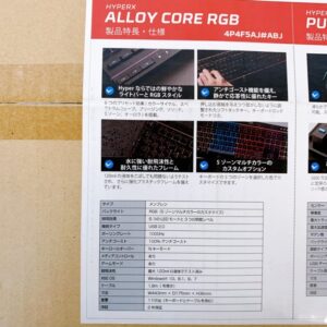 お預かりしたセットは外箱(段ボール)にわずかな保管スレがあるのみで、内容物は開封感の少ないきれいな状態。同梱の仕様シート・ケーブル・取扱説明の確認ができ、欠品なしでした。キーボードはRGB5ゾーンライティングに対応するメンブレンモデル、マウスは最大16,000DPI対応の有線ゲーミングマウスで、いずれも動作良好・目立つキズなしと判定しています。