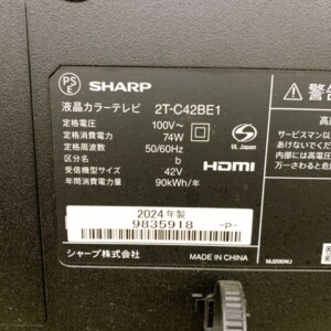 今回は世田谷区にお住まいの30代・女性より、SHARP AQUOS 42V型 液晶テレビ 2T-C42BE1(2024年製)を出張買取でご依頼いただきました。事前のLINEにて事前査定で外観写真と型番を共有いただき、当日は動作の最終確認を行ったうえで査定しています。