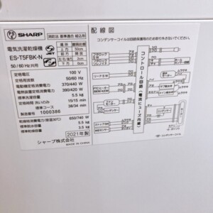 今回は東京都江東区にお住まいの一人暮らし男性のお客様より、SHARP(シャープ)電気洗濯乾燥機 ES-T5FBK-N(2021年製)を出張買取にてご依頼いただきました。