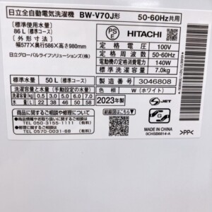 千葉県船橋市で日立全自動洗濯機 BW-V70J(2023年製)を出張買取|状態良好・高年式モデルを高価査定しました