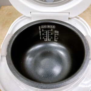 お預かりした炊飯器は、外装・内釜ともに使用感が少なく、全体的に清潔感のある良好な状態でした。液晶表示やボタン操作も問題なく、加熱ムラも見られませんでした。目立つ汚れやにおいの付着もなく、動作確認も完了しております。