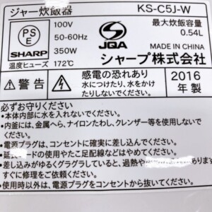 東京都杉並区でSHARP KS-C5J-W ジャー炊飯器を出張買取|2016年製で使用感少なく良好な状態でした