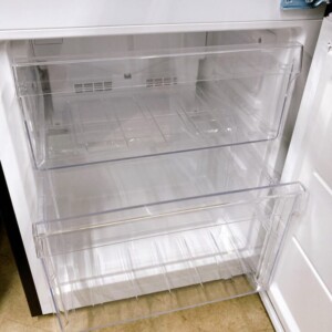 お預かりした冷蔵庫は外装・庫内ともに非常にきれいな状態で、使用感の少ない良品でした。棚板・引き出しには割れや変色もなく、冷却動作も安定していました。特にこのモデルは121Lの省エネタイプで、単身から2人暮らしに人気があるサイズです。