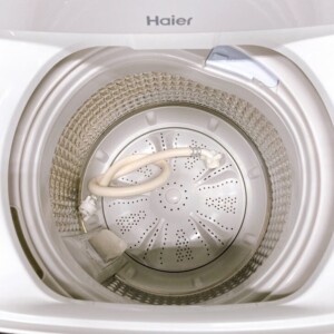 お預かりした洗濯機は、外装・槽内ともに目立つ汚れや傷のない良好な状態でした。槽内にはカビや水垢の付着も見受けられず、全体的に清潔感がありました。動作確認でも脱水や給水の不具合は見られず、正常動作を確認。付属の給水ホースも揃っており、製造年式のわりに良好な状態でした。