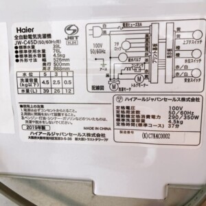 東京都世田谷区でHaier洗濯機 JW-C45D(2019年製)を出張買取しました