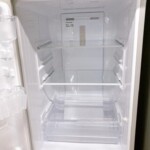 本機は定格内容積167L(冷蔵121L/冷凍46L)、幅480×奥行590×高さ1285mmの2ドア下段冷凍タイプ。庫内はガラス棚・クリアトレー・野菜ケースが揃い、割れや欠けなし。臭い残りも少なく、パッキンの密着も良好でした。外装は正面と側面に搬入・使用に伴う細かなすれ傷が点在しますが、大きな凹みは見られません。動作は安定しており、ファン音や異音の指摘もありませんでした。年式が新しめで、日常使用に支障のないコンディションです。