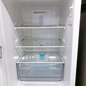 お預かりした冷蔵庫は、外装・庫内ともに非常にきれいな状態で、傷やへこみもほとんど見受けられませんでした。冷凍室内のトレーや製氷皿も清潔に保たれており、動作確認でも冷却性能・温度設定ともに良好。丁寧に使用されていたことがわかるお品でした。
