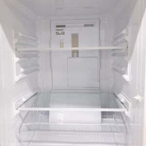 お預かりしたSHARP SJ-D14F-Wは、全体的にきれいな状態でした。外装には目立つキズやへこみもなく、庫内も丁寧に清掃されており、ニオイ残りもありませんでした。冷却機能や冷凍庫の動作も問題なく、製氷トレーなどの付属品も完備していました。