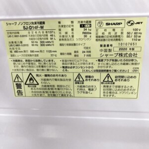 今回は宗像市にお住まいの女性より、SHARP(シャープ)ノンフロン冷凍冷蔵庫 SJ-D14F-W(2020年製)を出張買取にてご依頼いただきました。お客様は賃貸マンションにお住まいで、買い替えに伴う不要品の整理としてご相談をいただきました。