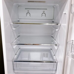お預かりした冷蔵庫は、2024年製の新しいモデルで、外観・庫内ともに非常に綺麗な状態でした。ガラス棚やドアポケット、野菜ケース、冷凍室トレイなどの付属品もすべて揃っており、動作確認でも冷却性能に問題はありませんでした。使用期間が短く、目立つキズや変色がない美品だったため、査定時にはプラス評価となりました。