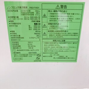 愛知県西尾市で冷蔵庫買取|ヤマダセレクト YRZ-F15G1(156L・2021年製)外装わずかな擦れ・庫内きれいな状態で査定しました