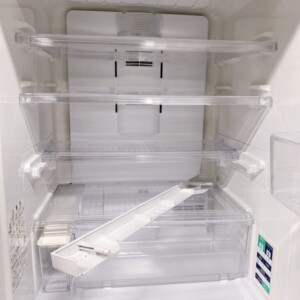 お預かりした冷蔵庫は、全体的にきれいな状態でした。外装に目立つ傷や汚れはなく、庫内も清潔に保たれており、棚板や引き出し部分の破損も見られませんでした。動作確認でも冷却機能・冷凍機能ともに問題なく、年式のわりに状態の良いお品でした。