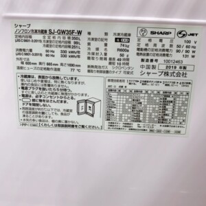 埼玉県富士見市でSHARP SJ-GW35F-W 冷蔵庫を出張買取|2019年製の美品を丁寧に査定しました