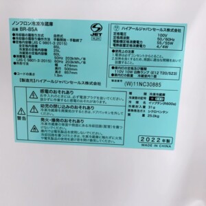 今回は茨城県取手市にお住まいの30代男性のお客様よりハイアール製 ノンフロン冷凍冷蔵庫 BR-85A(2022年製)の出張買取をご依頼いただきました。