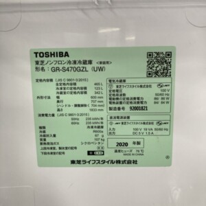 東京都江東区で東芝ノンフロン冷凍冷蔵庫 GR-S470GZL(UW)を出張買取 2020年製・美品を高価査定しました