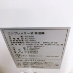 お預かりしたVS-560は、外観・内部ともに清潔で、使用感の少ない美品でした。動作確認では除湿機能・送風機能・タイマー設定ともに正常に動作し、フィルターや水タンクにも汚れやカビは見られませんでした。取扱説明書・電源コード・箱も揃っており、非常に丁寧に保管されていた印象です。
