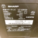 千葉県千葉市でシャープ液晶テレビ LC-22K30(2015年製)を出張買取|テレビ無料引取りしました