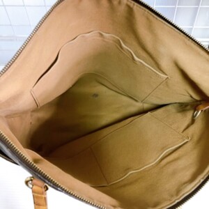 外装はモノグラムキャンバスに目立つ破れはなく、型崩れは軽度でした。一方で、ヌメ革ハンドルとトリミングに日焼け(ヤケ)・黒ずみ・擦れが見られ、金具には小キズとメッキのくすみを確認。ファスナープルは刻印がはっきり残り動作良好です。内装はベージュ系ライニングに薄い点状シミが数か所、ポケットの縫製はしっかりしておりベタつきはありません。総合すると日常使用感のある並程度のコンディションです。