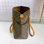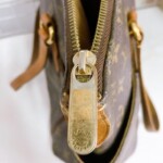 外装はモノグラムキャンバスに目立つ破れはなく、型崩れは軽度でした。一方で、ヌメ革ハンドルとトリミングに日焼け(ヤケ)・黒ずみ・擦れが見られ、金具には小キズとメッキのくすみを確認。ファスナープルは刻印がはっきり残り動作良好です。内装はベージュ系ライニングに薄い点状シミが数か所、ポケットの縫製はしっかりしておりベタつきはありません。総合すると日常使用感のある並程度のコンディションです。