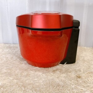 お預かりした本体は、画像のとおり天面に擦りキズやくすみが見られ、外周にも日常使用に伴う線キズが確認できました。庫内のコーティングは大きな剥がれはなく、通電・加熱・操作パネルは確認時点で動作良好。付属は電源コードのみで、レシピ本・蒸しトレイなどは一部欠品でした。におい移りは軽微で、内部の汚れは通常クリーニングで解消できる程度です。