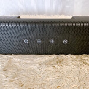 お預かりしたJBL Bar Studioは、全体的に使用感が少なく、動作も良好な美品でした。外観には目立つキズや汚れはなく、音量・入力切替ボタンの反応も良好。Bluetooth・HDMI ARC接続の双方で確認したところ、問題なく動作いたしました。リモコンは欠品していましたが、サウンド品質がしっかり保たれている点が高評価につながりました。
