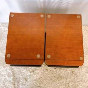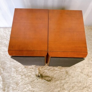 お預かりしたD-102TXは、木製キャビネット特有の小さなスレや天板の薄いキズはあるものの、全体的に保存状態の良いペアスピーカーでした。グリルネットの破れや変色は見られず、端子部分の接触も問題ありません。長期間の保管にもかかわらず内部ユニットの劣化も少なく、音出しチェックではしっかりとした低音と明瞭な高音を確認できました。