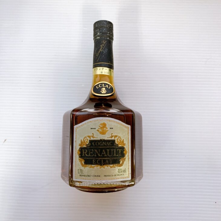 お預かりしたルノー エクラは未開栓・ボトルの液面低下もほぼ見られない良好な状態でした。外箱はなしでしたが、ラベルやキャップ部分に多少の経年スレがある程度で、コレクターの方にも評価される保存状態でした。容量は700ml/アルコール度数40%で、フランス・コニャック地方の伝統あるブランデーとして高い人気を誇ります。