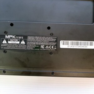 お預かりしたMPK miniは全体的に使用感が少なく非常にきれいな状態でした。鍵盤やパッドの反応も良好で、ノブの動作にも問題ありません。接続用USBケーブルも付属しており、動作確認済みの商品でした。