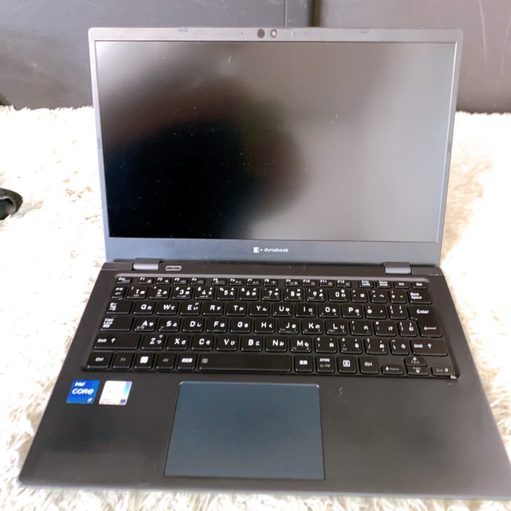 お預かりしたdynabookは、外装に若干のスレや使用跡は見られるものの、液晶割れ・キーボード欠損・ヒンジ緩みなしの良好な状態でした。付属品として純正ACアダプターも揃っており、起動・動作確認済み。OSはWindows 11が正常に動作し、バッテリー駆動時間も十分であったため、全体として中古上位グレードでの評価となりました。