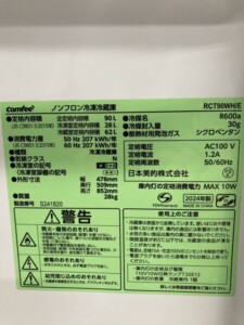 今回は埼玉県久喜市にお住まいの20代女性より、Comfee'(コンフィー) 製ノンフロン冷凍冷蔵庫 RCT90WH/E(2024年製)を出張買取にてご依頼いただきました。ひとり暮らしにぴったりのコンパクトサイズながら、冷凍室と冷蔵室がしっかり分かれた2ドアタイプで人気のモデルです。