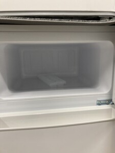 外観は前面パネルにわずかな擦れ・小キズが見受けられるものの、へこみはなく全体の印象は良好。庫内はトレイ・棚ガラス・野菜ケースが揃い、清掃状態も良いコンディションでした。パッキンの裂けや変形は確認されず、温度調節ダイヤル・冷凍室の霜取り状況も問題なし。年式が2020年と新しめで、家庭用として丁寧に使われていた様子がうかがえます。