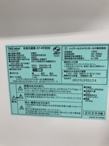 千葉県浦安市でTAG label by amadana AT-RF85B(2020年製)を出張買取|小キズあり・庫内きれいな良品を高価査定