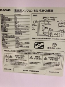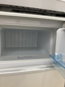 お預かりしたAR-100Eは、外装にわずかなスレがある程度で、全体的に非常にきれいな状態でした。冷蔵室・冷凍室ともにニオイ残りや汚れがほとんどなく、トレーやドアポケットの割れもなし。冷却・冷凍動作も良好で、庫内温度は安定しており、庫内照明・温度調節ツマミも問題なく機能していました。