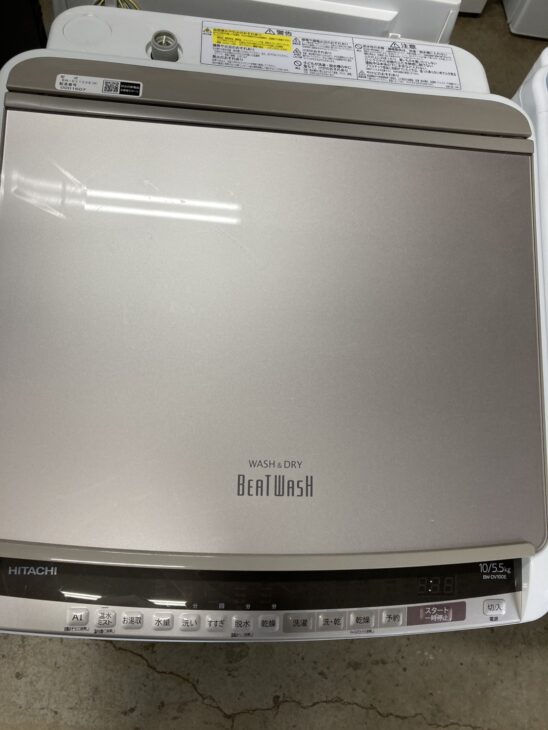 今回は大川市にお住まいの40代・男性より、日立の洗濯乾燥機BW-DV100E(2020年製)を出張買取にてご依頼いただきました。洗濯10.0kg、乾燥5.5kgの大容量タイプで、銘板表記から定格電圧100V、外形寸法:幅610×奥行635×高さ1,060mmであることを確認しています。ご連絡は電話からのご依頼で、型番と設置環境を伺ったうえで訪問日を調整しました。