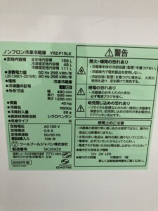 REFAGE YRZ-F15LKは、156Lの使い勝手の良いサイズと、スタイリッシュなブラックデザインが人気のモデルです。2023年製という新しさと美品状態が評価され、今回の査定では1,500円の買取価格となりました。