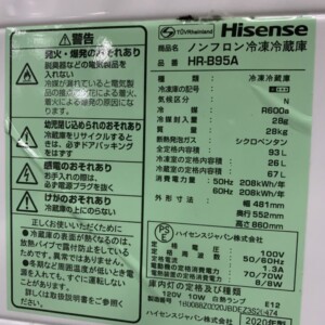 今回は東京都東久留米市にお住まいの40代・女性より、Hisense(ハイセンス)ノンフロン冷凍冷蔵庫 HR-B95A(2020年製)の出張買取をご依頼いただきました。お問い合わせはLINEにて事前査定。お住まいは賃貸(マンション)の親子世帯で、買い替えに伴うご整理でした。