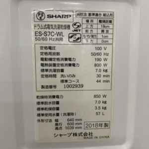 栃木県日光市でSHARPドラム式洗濯乾燥機 ES-S7C-WLを出張買取|2018年製・良好な状態で高価査定