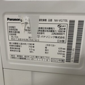 今回は群馬県みどり市にお住まいの40代男性・会社員より、Panasonic(パナソニック)ドラム式洗濯乾燥機 NA-VG770L(2022年製)を出張買取にてご依頼いただきました。